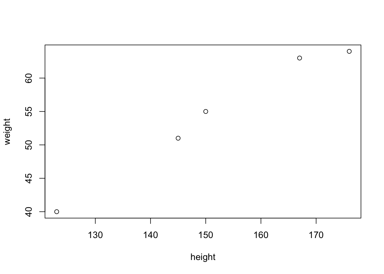 weight <- c(40, 51, 55, 63, 64)