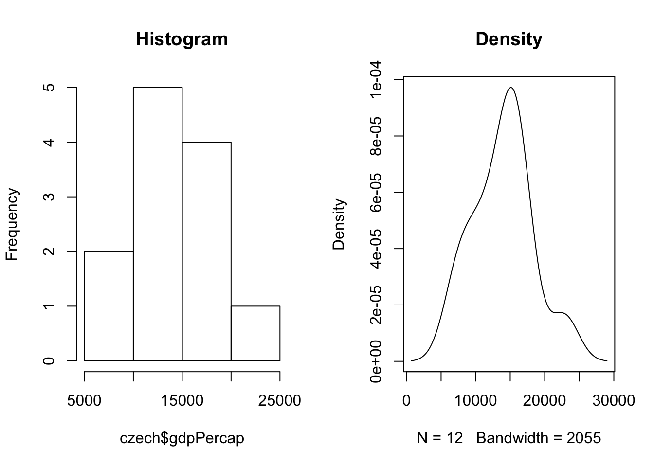 plot(density(czech$gdpPercap), main="Density")