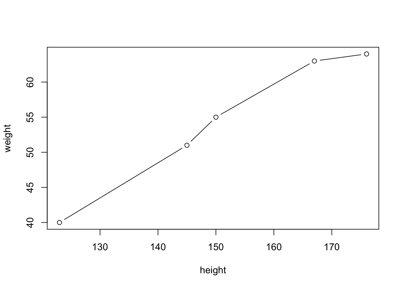 plot(height, weight)