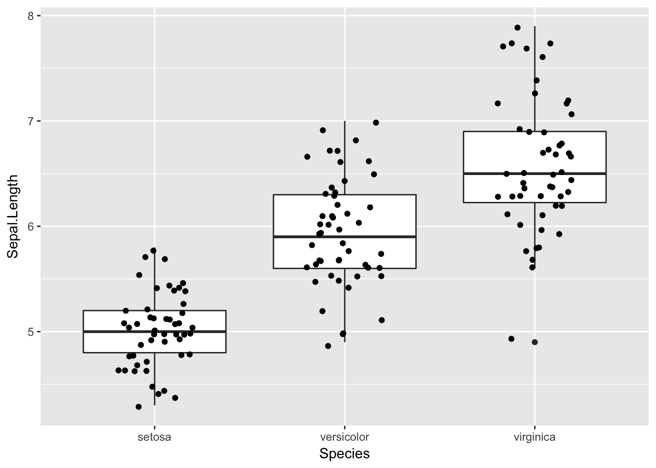 ggplot(iris, aes(x = Species, y = Sepal.Length)) +